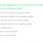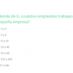 Sin embargo, no todas las personas que responden estas encuestas trabajan en pequeñas empresas. Para ayudar a nuestro equipo a hacer preguntas que sean relevantes tanto para los pequeños empresarios como para los demás, usamos la lógica de exclusión de preguntas en la primera pregunta. Esto es lo que preguntamos: