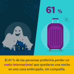 Más de 3 de cada 5 personas preferirían perder un costoso vuelo internacional antes que dormir en una casa embrujada una noche, sin compañía.