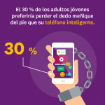 Tres de cada cuatro personas preferiría pasar un mes sin su teléfono que estar un semana encerrado y solo. El 80 % prefiere vivir sin su teléfono inteligente que perder el dedo meñique del pie. Lo que probablemente no resulte sorprendente es que los adultos jóvenes (de 18 a 29 años) muestran una tendencia menos marcada: solo el 70 % está dispuesto a sacrificar su teléfono para salvar su dedo meñique del pie. Esto podría atribuirse al hecho de que cada vez usan más y más sus teléfonos.