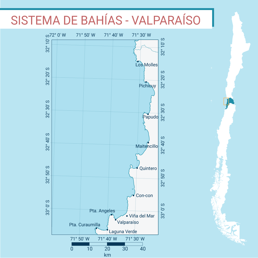 En particular en el caso de esta encuesta, le invitamos a identificar sitios que sean de interés en el Sistema de Bahías Valparaíso (ver mapa más abajo). Los resultados contribuirán a caracterizar las singularidades y áreas a lo largo del conjunto de bahías, de manera de direccionar los esfuerzos en ciencia, tecnología, conocimientos e innovación a partir de las ventajas naturales y los desafíos en torno al océano centro-norte.