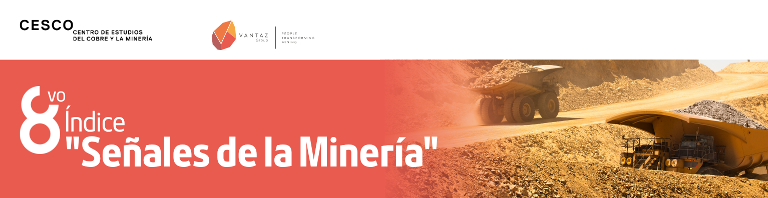 8° ÍNDICE "SEÑALES DE LA MINERÍA" - CHILE Muchas gracias por su participación en el estudio "Señales de la minería", realizado por CESCO y Vantaz Group. El tiempo estimado de respuesta de la encuesta es de 7 minutos.(*) Indica que la pregunta es obligatoria I. Variables demográficas Question Title * 1. Seleccione su país de residencia Chile Otro (especifique) Question Title * 2. Seleccione el nivel de cargo que mejor represente su puesto de trabajo actual Socio(a) / Director(a) Gerente, Subgerente Jefe(a) / Supervisor(a) Colaborador(a) (sin personas a cargo) No aplica Question Title * 3. Seleccione al tipo de empresa/institución a la que pertenece Empresa minera Proveedor de la minería Institución académica Organismo público Otra (especifique) Sig.