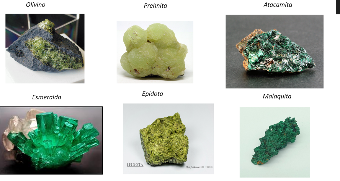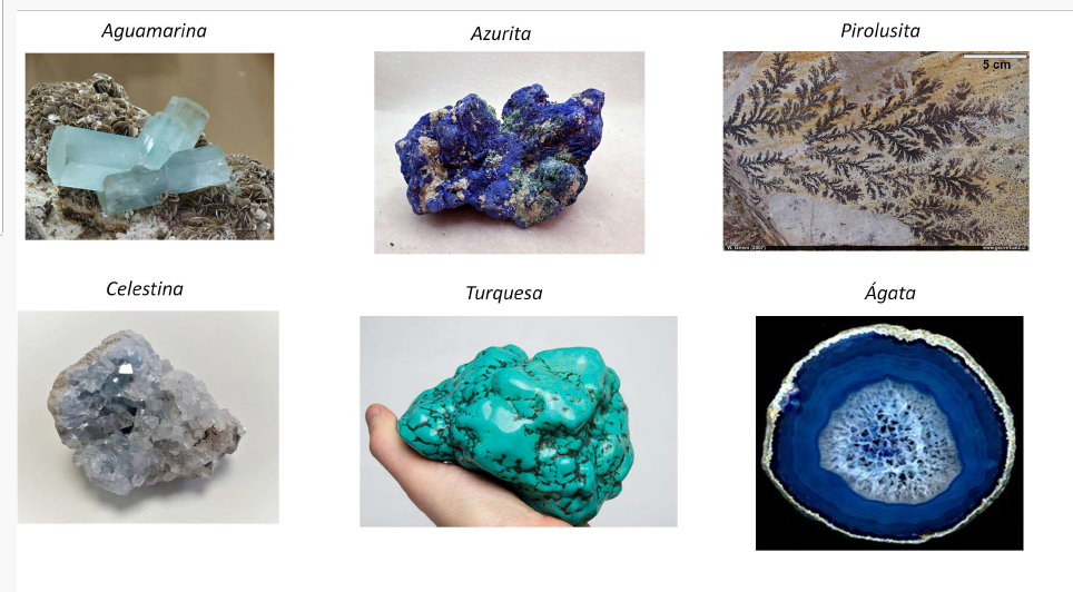 REPASO I - MINERALES Question Title * 1. Poned vuestros nombres y apellidos (pareja, grupo) Question Title * 2. Marca cuáles de las siguientes son propiedades de los minerales Hábito. Pizarrosidad. Color. Brillo. Transmisor de buena energía. Radiactividad. Tenacidad Elasticidad Densidad Exfoliación (capacidad para desgajarse en láminas) Tamaño del mineral Magnetismo. Rompibilidad Opacidad Birrefringencia (desdobla un haz de luz en dos) Propiedades eléctricas Question Title * 3. Fíjate en las siguientes imágenes de minerales azules y responde en el cuadro de texto:1) ¿Qué mineral/es se puede/n emplear en la fabricación de joyas?2) ¿Qué mineral forma unas estructuras llamadas "dendritas"?3) ¿Qué mineral es una variedad del berilo?4) ¿Qué mineral da efervescencia con el HCl (ácido clorhídrico)?5) ¿Qué mineral presenta manganeso en su composición química?6) ¿De qué mineral se podría extraer estroncio? Question Title * 4. Clasifica los mismos minerales del ejercicio anterior en los distintos grupos químicos:Recuerda: si es un silicato, deberás indicar el subtipo (nesosilicato, filosilicato, sorosilicato, etc.). Si no es un silicato, busca el nombre según su grupo químico (recuerda: sulfuros, carbonatos, óxidos, etc.) Question Title * 5. Señala la opción correcta: "Los minerales sulfatos son aquellos que contienen el grupo químico: S2-". "Los minerales silicatos son los únicos que dan efervescencia con HCl". "El topacio SÍ puede rayar al corindón". "La omeiíta, OsAs2, es un mineral con una densidad > 10 g/cm3". "La biotita no posee brillo de ningún tipo" Question Title * 6. En relación con los siguientes minerales verdes:a) ¿Cuál puede rayar a todos los demás? (Pista: busca su dureza según la Escala de Mohs).b) ¿Cuál es rayado por todos los demás?c) ¿Cuál de ellos se considera "piedra preciosa"?d) ¿Cuál suele aparecer asociado a basalto?e) ¿Cuál de ellos puede aparecer asociado a azurita?f) ¿Cuál es un sorosilicato? Question Title * 7. Clasifica los anteriores minerales según su grupo químico (carbonatos, sulfatos, haluros, etc.) o subtipo de silicato (nesosilicato, etc.). Escribe el nombre de mineral junto con su grupo o subtipo de silicato en el cuadro de texto adjunto. Question Title * 8. ¿Cuál o cuáles de los siguientes tipos de minerales se caracterizan porque en su estructura molecular, todos los tetraedros de silicato SIEMPRE COMPARTEN DOS ÁTOMOS DE OXÍGENO? Sorosilicato Inosilicato (Piroxenos) Tectosilicato Filosilicato Ciclosilicato Nesosilicato Inosilicato (Anfíboles) Question Title * 9. Observa las siguientes imágenes de minerales rosas y contesta a las preguntas:a) ¿Qué mineral tiene un elemento químico que se emplea en la construcción de termómetros?b) ¿De cuál se puede extraer manganeso?c) ¿Cuál es una "variedad rosa" de la turmalina?d) ¿Cuál presenta un átomo metálico que también aparece en la vitamina B12?e) ¿Cuál es una variedad de la zoisita?f) Aparte de ser rosa, puede ser lechoso, citrino o ahumado. ¿Cuál es?g) Busca quién es el más denso de todos. Question Title * 10. Busca a qué grupo químico (o subgrupo de silicatos) pertenecen los anteriores minerales rosas: Listo
